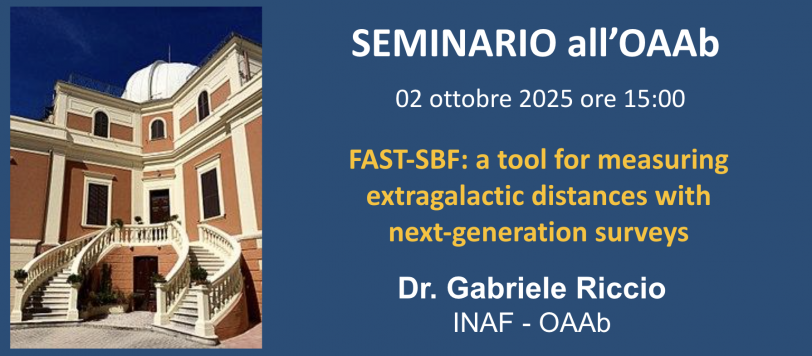 Giovedì 02 ottobre alle ore 15:00, il Dott. Gabriele Riccio, dell’INAF-Osservatorio Astronomico d’Abruzzo, terrà il seminario dal titolo “FAST-SBF: a tool for measuring extragalactic distances with next-generation surveys”.