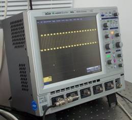 Tra la strumentazione a disposizione spicca un oscilloscopio digitale LeCroy Wavesurfer 44Xs, caratterizzato da 4 canali di output, ciascuno con una larghezza di banda da 200 MHz a 1 GHz e frequenza di campionamento di 2.5 GSamples / sec. Questo strumento permette di registrare e salvare nella memoria locale fino a 2.5 milioni di dati per canale, permettendo dunque lo studio di fenomeni di brevissima durata temporale o di altissima frequenza, come ad esempio disturbi transienti o sistematici in circuiti di readout veloce.